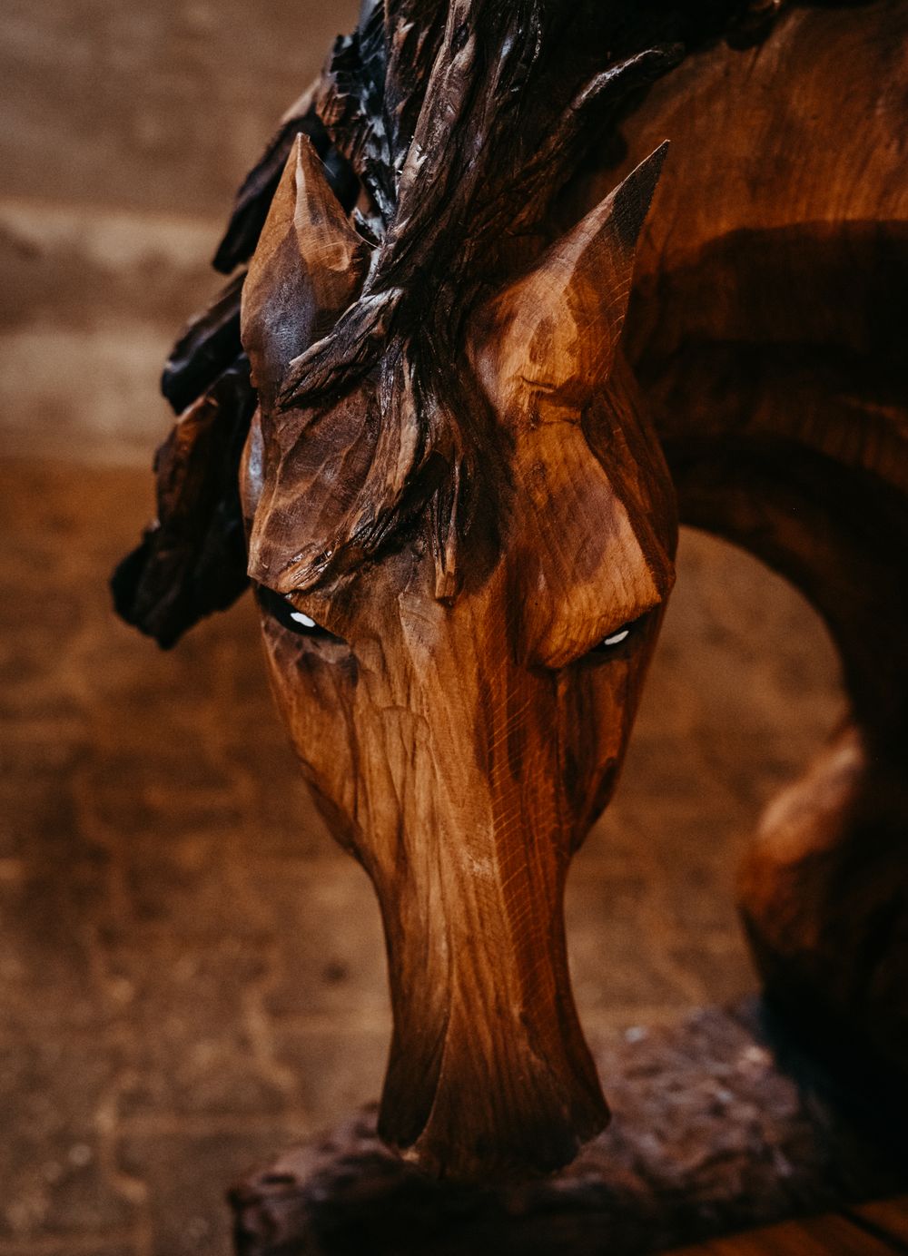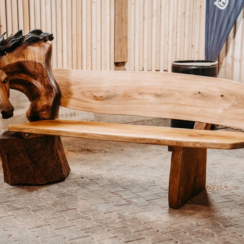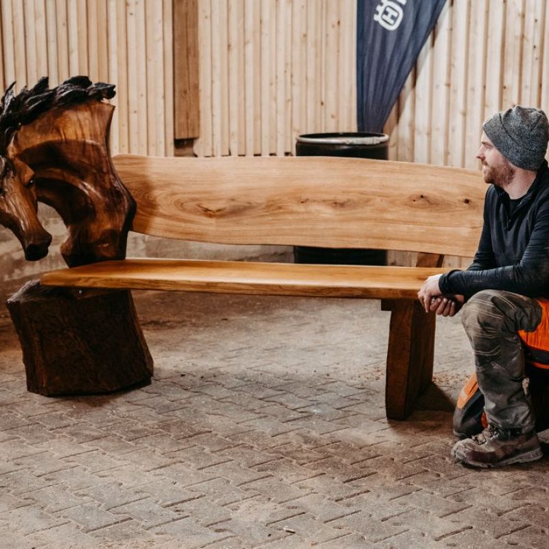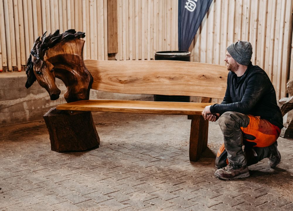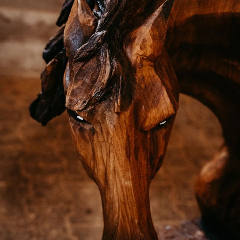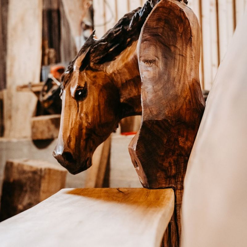 Für einen Pferdehof durfte ich diese extravagante und tolle Sitzgelegenheit erschaffen. Aus einem mächtigen ca. 80 cm dicken Eichen Stamm konnte die schöne Haltung des Kopfes geformt und heraus gearbeitet werden. Die Mähne zeigt die Wildheit des Kunstwerks und die Ohren sowie die Augen zeigen von Entschlossenheit mit der es im Leben steht. Denn auch der Betreiber des Gestüt geing mit Entschlossenheit in seinem Leben voran und baute einen wunderbaren Pferdehof auf.