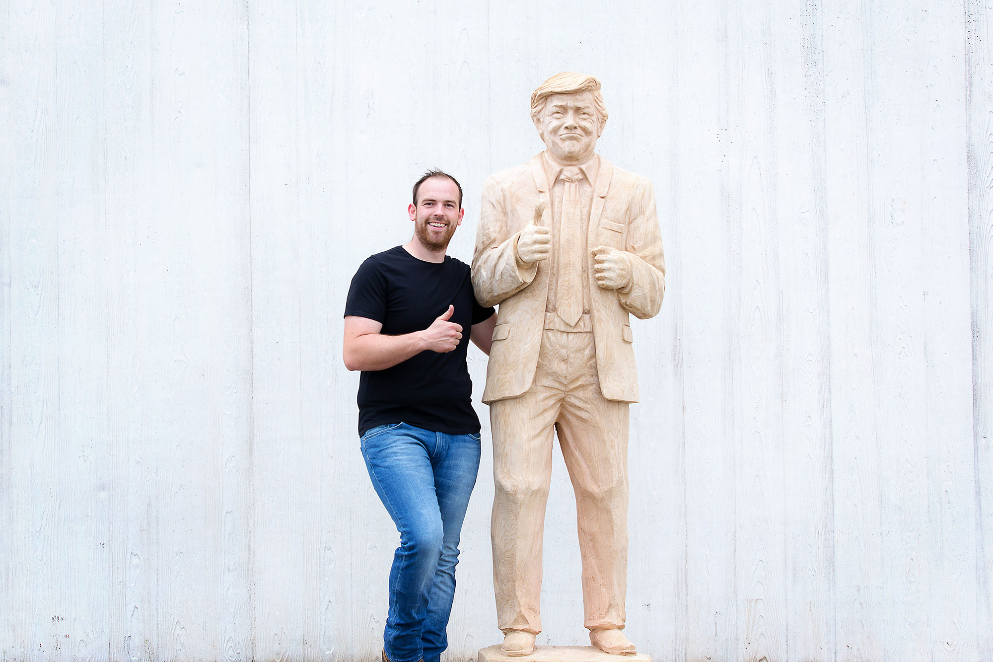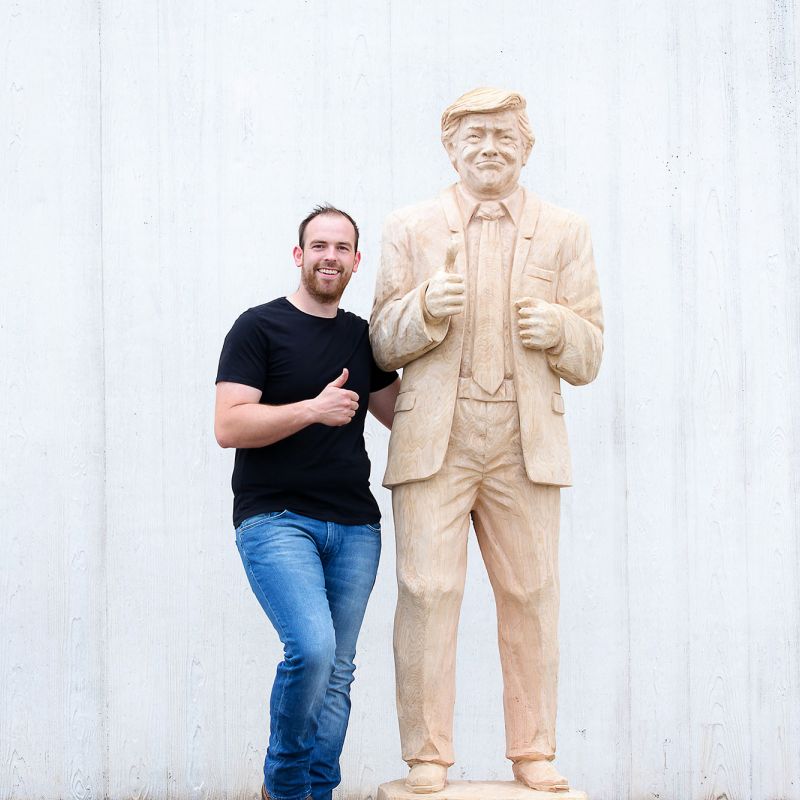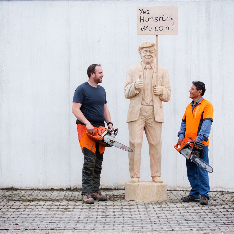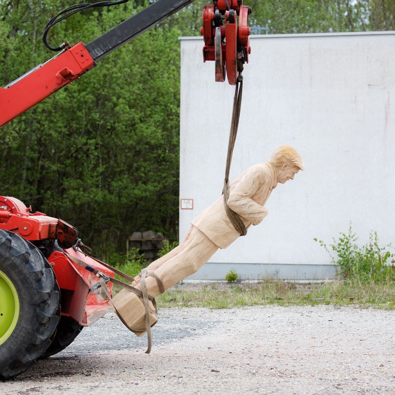 Am 1. Mai 2019, zur Walpurgisnacht, stellten wir gemeinsam eine besondere Skulptur auf dem Verkehrskreisel in Kirchberg auf: den hölzernen Trump.